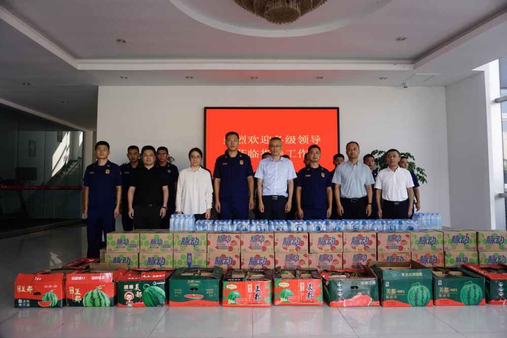 8月1日下午,揚(yáng)州公用控股集團(tuán)有限公司領(lǐng)導(dǎo)班子一行,前往邗江區(qū)新盛消防中隊,慰問高溫奮斗在應(yīng)急搶險救援一線的消防隊員們,為他們送去消暑用品。