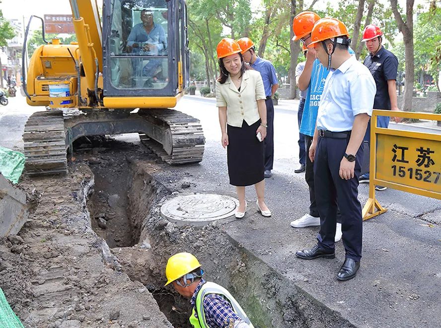 潘涵一行首先查看了鹽阜東路老舊燃?xì)夤艿栏脑焓┕がF(xiàn)場。潘涵詳細(xì)了解了老舊管網(wǎng)改造工程建設(shè)情況,檢查了現(xiàn)場安全管控措施、人員安全防護(hù)和安全警示標(biāo)志等重點工作落實情況。潘涵指出,老舊燃?xì)夤艿栏脑焓且豁椈菁扒Ъ胰f戶的民生工程,要按照管道施工相關(guān)要求規(guī)范作業(yè),利用GPS做好管道精準(zhǔn)定位,要加強施工現(xiàn)場管理,做好安全防護(hù)、安全宣傳等工作,要確保正常交通秩序,增加現(xiàn)場安全疏導(dǎo)人員,保證行車、行人的安全。