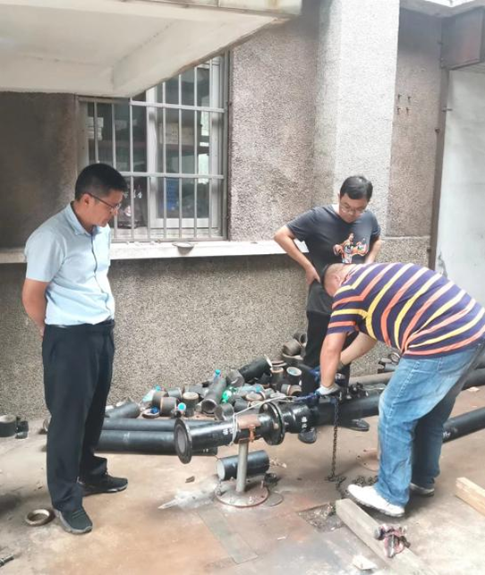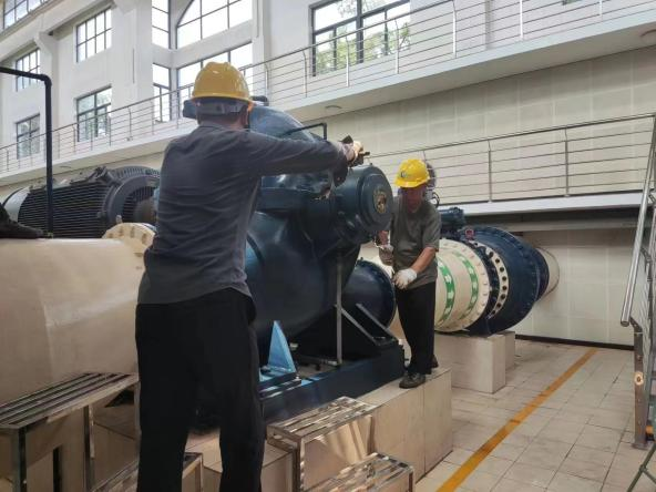 搶維修中心:調試大儀增壓站電氣控制箱,加機增壓緩解欠壓地區(qū)供水不足問題;對頭橋水廠機泵進行維保,增強安全運行工效。
