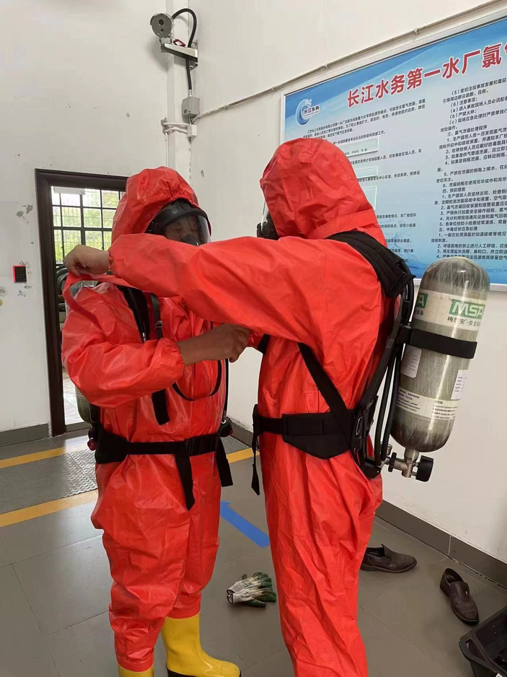 第一水廠:開展漏氯泄漏搶修演練,同時加強加氯設施運行維護。