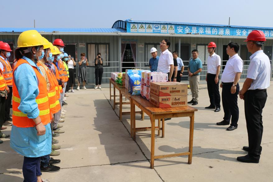 上善公司在確保項目施工安全和項目質(zhì)量的前提下倒排工期、加班加點,全面推進項目建設(shè),國慶假日期間,上善公司領(lǐng)導(dǎo)班子高度重視、下沉一線,現(xiàn)場指揮。生態(tài)科技新城黨工委書記也帶隊對一線員工進行了慰問,向堅守在工地的員工表達感謝,并給大家送去節(jié)日的問候以及慰問品。