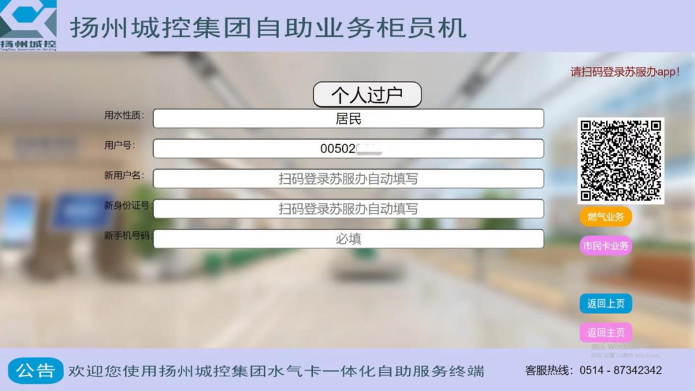 在去年推出的公用服務(wù)自助機(jī),提供水、氣繳費(fèi)、市民卡充值功能的基礎(chǔ)上,長(zhǎng)江水務(wù)公司創(chuàng)新服務(wù)舉措,優(yōu)化服務(wù)營(yíng)商環(huán)境,通過(guò)大數(shù)據(jù)信息采錄,下載“蘇服辦”APP并反向掃碼,完成過(guò)戶功能,多方位提升自助機(jī)功能,將個(gè)人身份信息、房產(chǎn)信息、用水用氣用卡信息于一機(jī),成為省內(nèi)、市內(nèi)首創(chuàng)應(yīng)用。