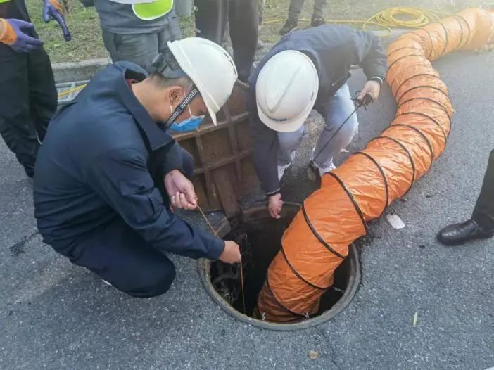 “報(bào)告總指揮,實(shí)操演練人員已集結(jié)完畢,請(qǐng)指示!”現(xiàn)場指揮向總指揮請(qǐng)示后開始演練。在對(duì)參演人員進(jìn)行作業(yè)安全風(fēng)險(xiǎn)告知后,演練人員嚴(yán)格按照“先通風(fēng)、再檢測、后作業(yè)”的原則,首先對(duì)有限空間內(nèi)采取強(qiáng)制性持續(xù)通風(fēng)措施,再使用便攜式氣體檢測儀對(duì)空間內(nèi)氣體濃度進(jìn)行檢測。符合安全規(guī)范要求后,作業(yè)人員依次佩戴安全帶、安全繩、呼吸面罩等防護(hù)用品,并經(jīng)安全員檢查確認(rèn),在監(jiān)護(hù)人員輔助下進(jìn)入有限空間進(jìn)行作業(yè)。整個(gè)演練過程井然有序,有條不紊,取得了預(yù)期的效果。