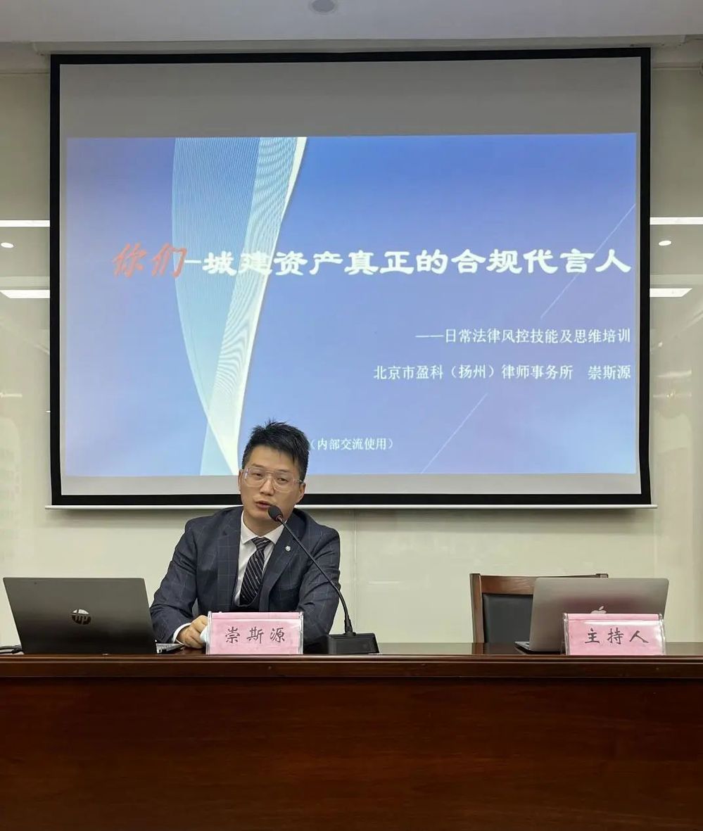 為幫助干部職工更多地掌握一般法律事務(wù)的處理方法,樹(shù)立通過(guò)法律控制風(fēng)險(xiǎn)的意識(shí)。11月18日上午,資產(chǎn)公司再次邀請(qǐng)公司法律顧問(wèn)單位——北京市盈科(揚(yáng)州)律師事務(wù)所律師開(kāi)展法律知識(shí)培訓(xùn)。公司有關(guān)領(lǐng)導(dǎo)、各處室、物業(yè)公司一線崗位人員參加了培訓(xùn)。