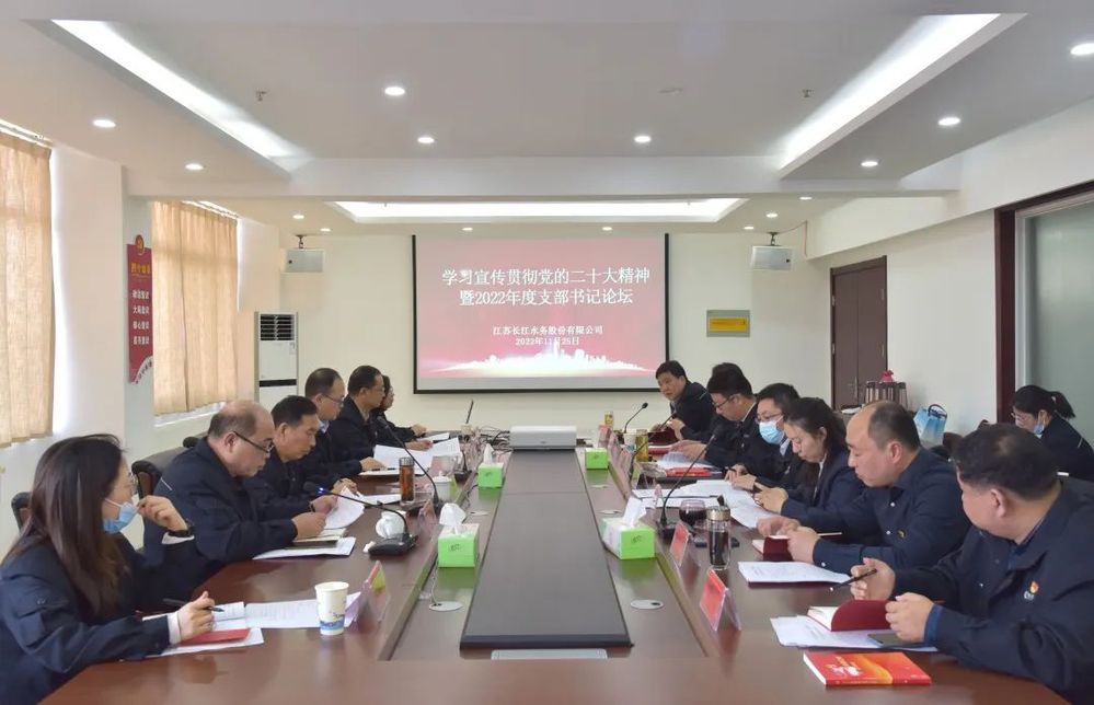 11月25日下午,長(zhǎng)江水務(wù)公司組織召開(kāi)支部書(shū)記論壇,深入學(xué)習(xí)宣傳貫徹黨的二十大精神。城控集團(tuán)黨委委員、長(zhǎng)江水務(wù)公司黨委書(shū)記、董事長(zhǎng)張正斌,長(zhǎng)江水務(wù)公司黨委副書(shū)記、副董事長(zhǎng)、總經(jīng)理,黨委委員、紀(jì)委書(shū)記出席會(huì)議,公司各黨支部書(shū)記、黨群處、紀(jì)委辦、人力資源處負(fù)責(zé)人參加會(huì)議。
