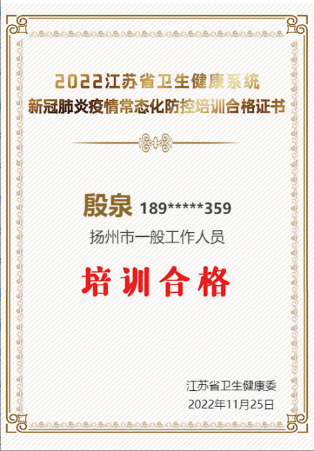 培訓(xùn)會(huì)上,與會(huì)人員共同觀看了“江蘇省常態(tài)化疫情防控培訓(xùn)平臺(tái)”上對(duì)《江蘇省優(yōu)化新冠肺炎疫情防控措施科學(xué)精準(zhǔn)做好防控工作實(shí)施方案》的解讀,會(huì)議強(qiáng)調(diào)了對(duì)疫情防控期間辦公場地和營業(yè)廳的管理要求,從人員管理、門禁管理、物資和后勤保障工作、核酸檢測和中高風(fēng)險(xiǎn)區(qū)域排查上報(bào)管理以及通風(fēng)、消毒等方面進(jìn)行了解讀,希望大家高度重視此次培訓(xùn),提高對(duì)近期疫情防控工作的重要認(rèn)識(shí)。集中學(xué)習(xí)后,全體職工利用休息時(shí)間登錄“江蘇省常態(tài)化疫情防控平臺(tái)”進(jìn)行學(xué)習(xí),均已獲得培訓(xùn)合格證書。