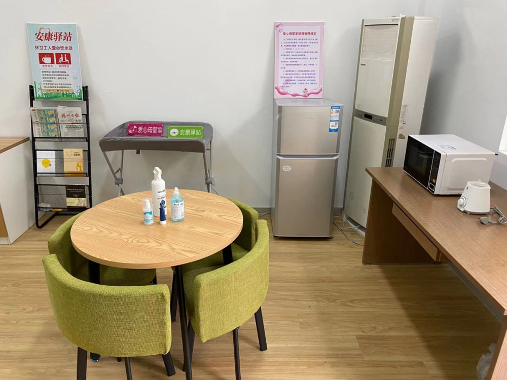 公司還設(shè)立了“愛心母嬰室”和“安康驛站”,配有空調(diào)、桌椅沙發(fā)、冰箱、微波爐、嬰兒尿布臺(tái)、書報(bào)架、等設(shè)備及物品,提供臨時(shí)休息、免費(fèi)熱水、免費(fèi)充電、飯菜加熱等便民服務(wù),并安排專人負(fù)責(zé)日常維護(hù)和管理工作。