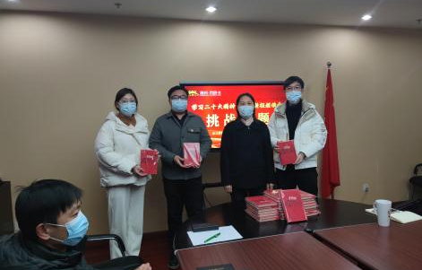 活動分為練習階段和競賽階段,12月3日至12月6日,參賽者可通過微信小程序進入答題界面每輪練習隨機50題,每天兩次答題練習機會。12月6日下午,在市民卡二樓會議室開展現(xiàn)場競賽,題目為50道單項選擇題,累計分數(shù)越高,用時較短者獲勝,比賽中,所有隊員全神貫注、認真作答,拼手速、比腦力,競賽現(xiàn)場氣氛熱烈。領導班子為獲獎黨員頒發(fā)紀念品并合影留戀。