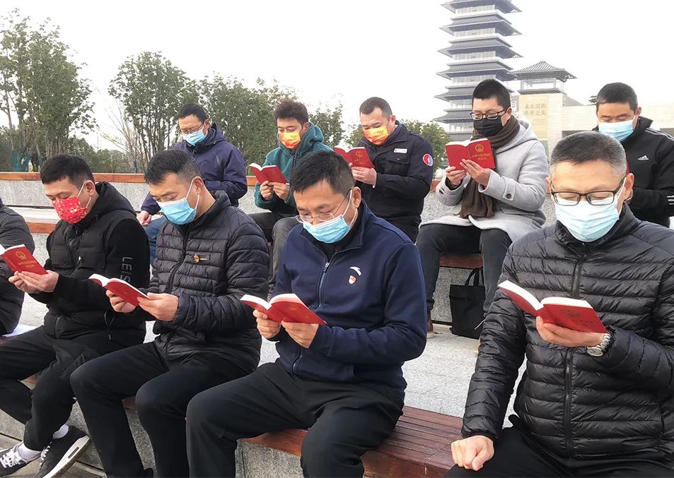 在公園法治宣傳園地,揚(yáng)州中燃公司第四、第五黨支部書記向大家贈(zèng)送了《中華人民共和國民法典》,隨后組織大家集中學(xué)習(xí)了黨的二十大報(bào)告要點(diǎn)和《民法典》部分章節(jié)。