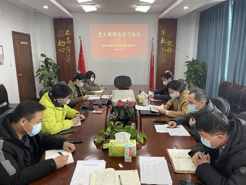 12月14日上午,古城保護(hù)公司召開黨支部(擴(kuò)大)理論學(xué)習(xí)會(huì)。公司黨支部書記、董事長(zhǎng)梁玉榮主持會(huì)議并講話。公司全體員工參加會(huì)議。