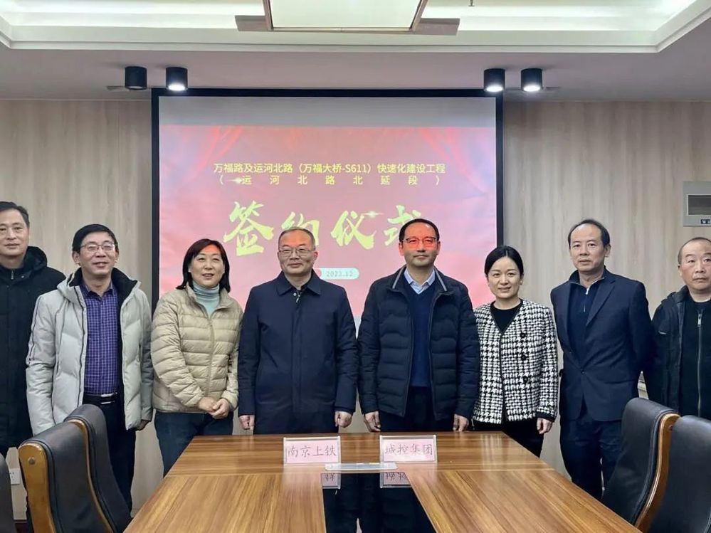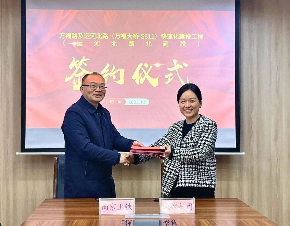 12月30日上午,城控集團(tuán)與南京上鐵地方鐵路開(kāi)發(fā)有限公司關(guān)于運(yùn)河路北延一期工程代建事宜順利完成簽約。市政府副秘書長(zhǎng)裴東偉、城控集團(tuán)總經(jīng)理潘涵、南京上鐵公司總經(jīng)理劉錦軍及市住建局、萬(wàn)福公司相關(guān)負(fù)責(zé)人出席簽約儀式。