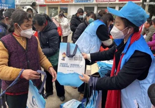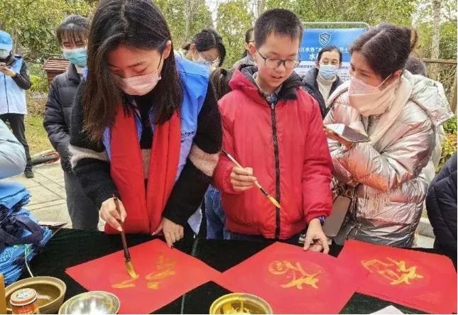 活動當(dāng)天,“水質(zhì)安全衛(wèi)士”和市應(yīng)急管理執(zhí)法局黨支部志愿者們早早便來到寶帶社區(qū)中心廣場準(zhǔn)備好筆墨紙硯,志愿者們揮毫潑墨,現(xiàn)場創(chuàng)作,將一張張充滿美好祝福的“福”字送到群眾手中,群眾們反響熱烈,紛紛圍觀領(lǐng)取。利用送“?!钡钠鯔C(jī), “水質(zhì)安全衛(wèi)士”志愿服務(wù)隊(duì)還向圍觀群眾發(fā)放冬季用水防寒保溫宣傳單,提供水質(zhì)檢測服務(wù),提醒大家注意冬季用水設(shè)施情況,做好防寒保暖工作,安全安心過節(jié)。
