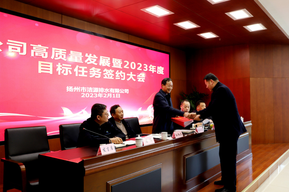 2月1日下午,潔源排水公司組織召開高質(zhì)量發(fā)展暨2023年度目標(biāo)任務(wù)簽約大會(huì),公司領(lǐng)導(dǎo)班子全體成員、全體中層干部及職工代表參加會(huì)議。