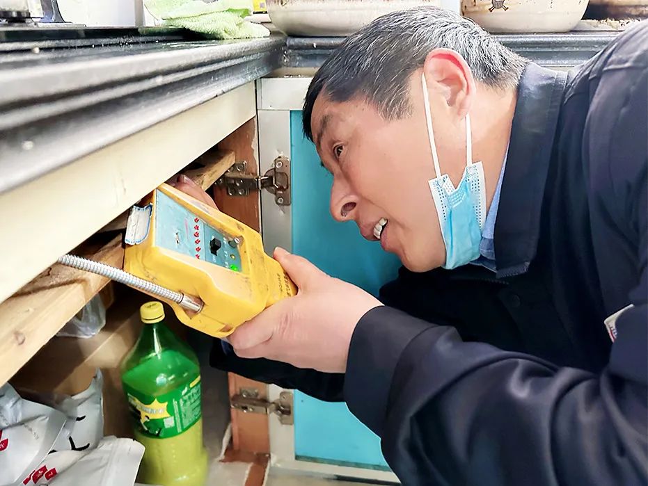在社區(qū)工作人員陪同下,志愿者充分發(fā)揮專業(yè)技能,為特殊群體家庭開展燃?xì)馊霊舭踩珯z查,詳細(xì)查看廚房內(nèi)的燃?xì)饩呤欠窈弦?guī),管道是否老化腐蝕,對現(xiàn)場發(fā)現(xiàn)的漏氣點(diǎn)及時(shí)修復(fù),為群眾提供實(shí)實(shí)在在的暖心服務(wù)。
