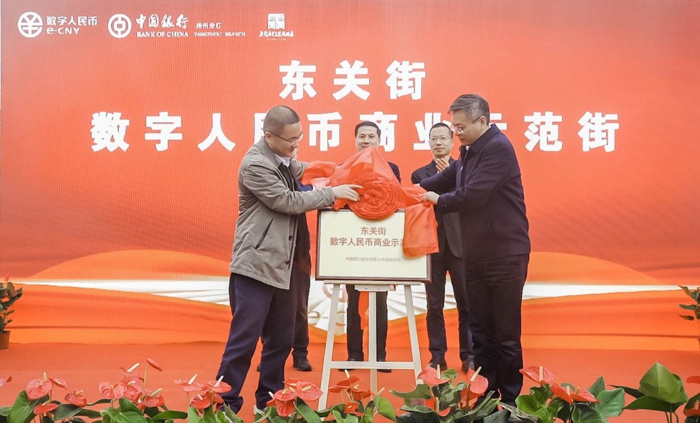 4月6日下午,揚(yáng)州市首個(gè)“數(shù)字人民幣商業(yè)示范街”揭牌儀式在東關(guān)街東門廣場(chǎng)隆重舉行,集團(tuán)黨委委員、名城公司總經(jīng)理戴興春,地方金融監(jiān)管局、商務(wù)局、人民銀行揚(yáng)州市中心支行分管負(fù)責(zé)人共同出席。