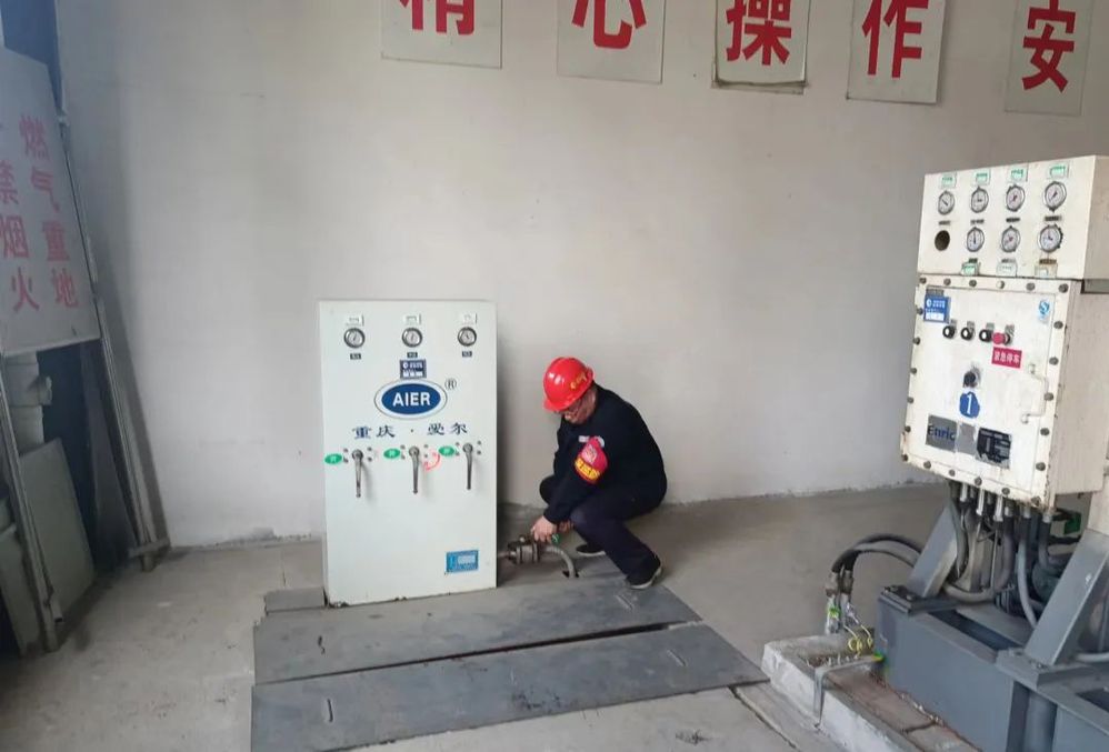 演練圍繞“消除安全隱患,筑牢安全防線”主題,主要模擬壓縮機(jī)間內(nèi)干燥塔閥門突發(fā)大量燃?xì)庑孤?,巡查人員發(fā)現(xiàn)后立即向當(dāng)班班長(zhǎng)匯報(bào),班長(zhǎng)立即啟動(dòng)應(yīng)急處置預(yù)案,組織人員關(guān)停所有站內(nèi)設(shè)備,切斷氣源,疏散現(xiàn)場(chǎng)人員;同時(shí)在加氣站出入口設(shè)置警戒,禁止無關(guān)人員、車輛進(jìn)入。維修人員到達(dá)現(xiàn)場(chǎng)后,及時(shí)實(shí)施搶修作業(yè),經(jīng)專業(yè)儀器檢測(cè)確認(rèn)燃?xì)庑孤┕收吓懦?,解除警戒,恢?fù)正常運(yùn)營(yíng)。