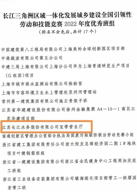 近日,從全國海員建設(shè)工會(huì)、住房和城鄉(xiāng)建設(shè)部傳來喜訊,寶帶營(yíng)業(yè)廳榮獲“長(zhǎng)江三角洲區(qū)域一體化發(fā)展城鄉(xiāng)建設(shè)全國引領(lǐng)性勞動(dòng)和技能競(jìng)賽2022年度優(yōu)秀班組”稱號(hào)。