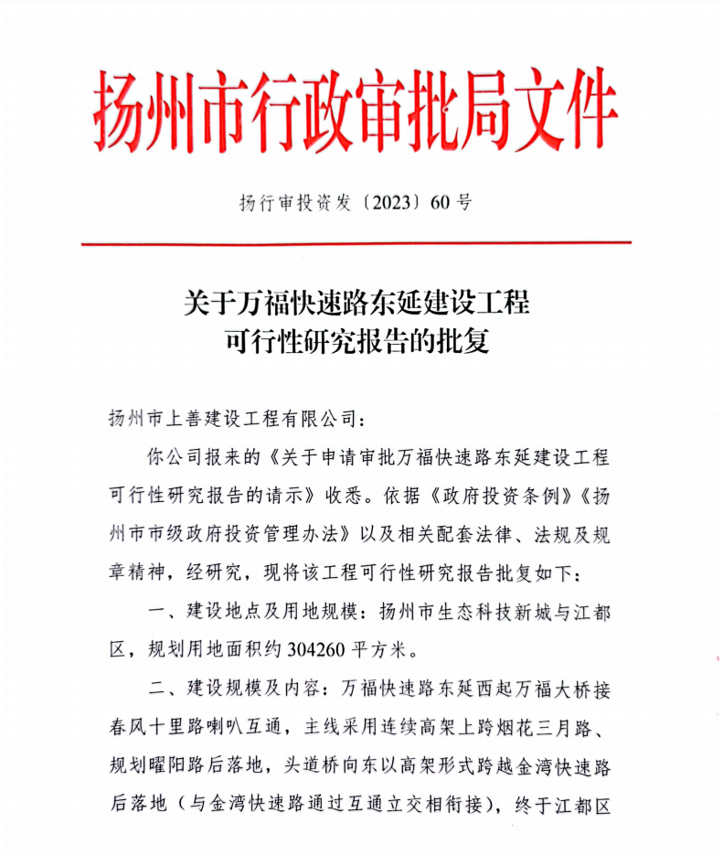 近日,萬??焖俾窎|延建設工程前期工作取得階段性突破,項目可行性研究報告獲得市行政審批局正式批復。