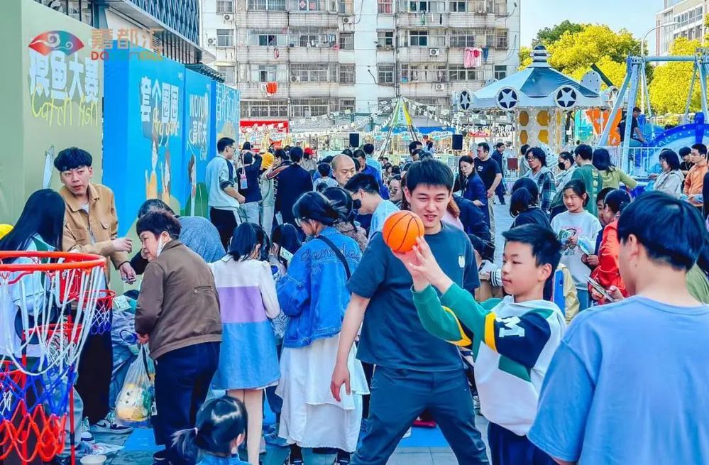 4月29日下午,在嘉都匯東廣場(chǎng)上精彩活動(dòng)接連不斷:市區(qū)幼兒園“愛(ài)心市集”活動(dòng),邀請(qǐng)了150組親子家庭參與愛(ài)心義賣(mài),籌得3000余元善款全部捐贈(zèng)給廣陵區(qū)慈善總會(huì);“春光運(yùn)動(dòng)會(huì)”中,50組親子家庭嗨玩“摸魚(yú)大賽”“套個(gè)圈圈”“投個(gè)籃籃”“WOW高爾夫”游戲;“蛋糕DIY”活動(dòng),九月森林聯(lián)合50組親子家庭共同制作屬于自己的創(chuàng)意小蛋糕;“春光小市集”里,饞幺妹、酒庫(kù)、半旬食集、那俞家、維揚(yáng)牛奶、一碗芋圓等15家商戶(hù)共同打造精致優(yōu)雅的嘉都匯市集;“五一”假期每晚17點(diǎn)至20點(diǎn)更有歌手駐場(chǎng),增加市集氣氛,現(xiàn)場(chǎng)熱鬧非凡。其中,在5月1日的“春光運(yùn)動(dòng)會(huì)”中,嘉都匯與沙口社區(qū)聯(lián)動(dòng),組織勞動(dòng)工作者進(jìn)行了一場(chǎng)趣味運(yùn)動(dòng)會(huì),大家都熱情高漲、踴躍參與。