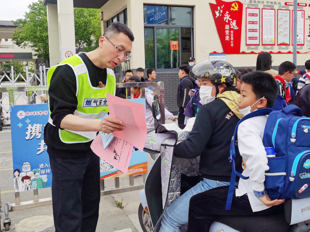 2023年4月28日,揚(yáng)州中燃公司第五支部“藍(lán)焰同心”志愿者在江陽路渡江崗和文峰小學(xué)散學(xué)點(diǎn)設(shè)立交通勸導(dǎo)崗,組織開展“交通安全在心中 幸福快樂伴我行”主題宣傳活動(dòng),引導(dǎo)學(xué)生從小做起,從自身做起,做到文明禮讓、安全出行、珍愛生命。