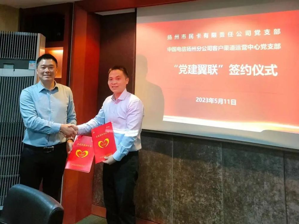 隨后,揚(yáng)州市民卡公司黨支部與中國(guó)電信揚(yáng)州分公司客戶渠道運(yùn)營(yíng)中心黨支部展開了黨建翼聯(lián)結(jié)對(duì)簽約活動(dòng)。相關(guān)負(fù)責(zé)人圍繞“聯(lián)學(xué)、聯(lián)創(chuàng)、聯(lián)享、聯(lián)動(dòng)”方面的黨建共建合作進(jìn)行了深入細(xì)致的交流,就黨建優(yōu)勢(shì)轉(zhuǎn)化為發(fā)展優(yōu)勢(shì)、資源互補(bǔ)提出了建設(shè)性建議。
