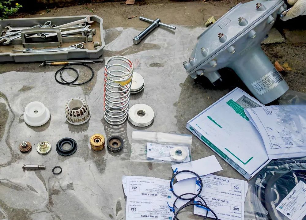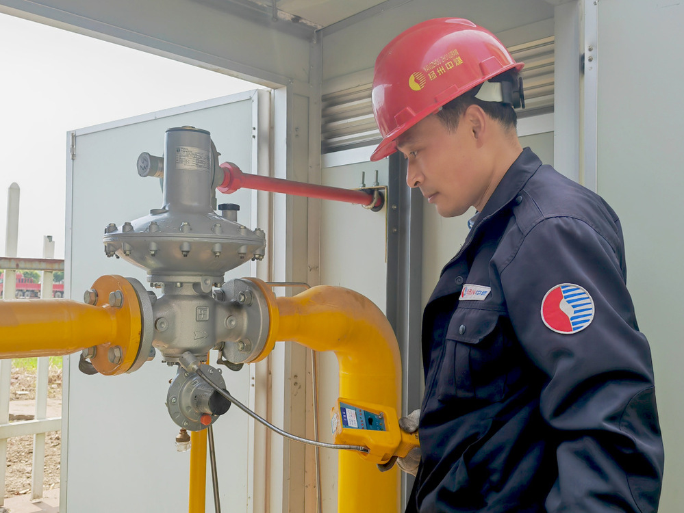 演練模擬調(diào)壓班巡查人員發(fā)現(xiàn)運(yùn)西恒園小區(qū)調(diào)壓器泄漏,按照應(yīng)急預(yù)案逐級(jí)報(bào)告,生產(chǎn)運(yùn)營(yíng)部負(fù)責(zé)人接報(bào)修后,立即安排應(yīng)急搶修人員到達(dá)現(xiàn)場(chǎng),查看泄漏情況,現(xiàn)場(chǎng)制定搶修方案、高峰時(shí)段區(qū)域用戶正常供氣應(yīng)急措施。搶修人員根據(jù)方案流程迅速關(guān)閉調(diào)壓器進(jìn)出口閥門,開啟旁通閥門,手動(dòng)調(diào)節(jié)控制用戶燃?xì)鈮毫?,不影響居民正常用氣。調(diào)壓維修人員拆下調(diào)壓設(shè)備,查找故障點(diǎn),清理配件,更換故障設(shè)備和備件包,重新安裝調(diào)試。經(jīng)檢漏儀檢測(cè)合格后,關(guān)閉旁通供氣,調(diào)壓器恢復(fù)正常運(yùn)營(yíng),至此完成搶修。