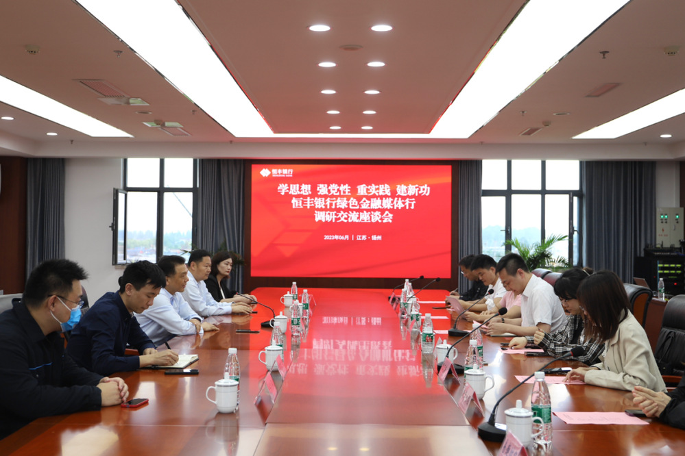6月5日下午,恒豐銀行總行邀請新華網(wǎng)、金融時報、新華日報、人民網(wǎng)江蘇站等近十家全國性和省級媒體來到揚州市潔源排水有限公司,組織開展了“學思想、強黨性、重實踐、建新功---恒豐銀行綠色金融媒體行”活動。公司分管負責人以及相關(guān)部門負責人參加了會見,并就深化銀企業(yè)務(wù)合作進行了座談交流。