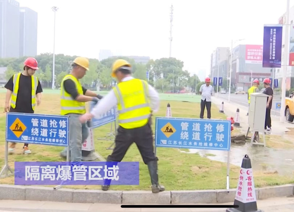 “供水搶修隊,受強降雨影響,廣陵大橋東一處供水管道破裂,你們要立即搶修!”長江水務搶維修中心接到指令后,派水網先鋒突擊隊迅速趕到指定地點進行搶修。
