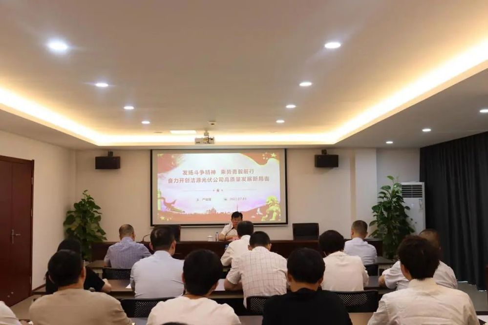 會上,嚴(yán)俊泉以《發(fā)揚(yáng)斗爭精神、乘勢勇毅前行,奮力開創(chuàng)潔源光伏公司高質(zhì)量發(fā)展新局面》為題,從“深刻認(rèn)識斗爭精神的豐富內(nèi)涵”“準(zhǔn)確把握新時代斗爭精神的特點(diǎn)要求”“堅持發(fā)揚(yáng)斗爭精神的路徑方法”三個方面闡述了斗爭精神的時代特征和實(shí)踐要求,分析了“雙碳”目標(biāo)背景下新能源發(fā)電產(chǎn)業(yè)的斗爭形勢,并對潔源光伏公司下一步工作提出了具體要求。