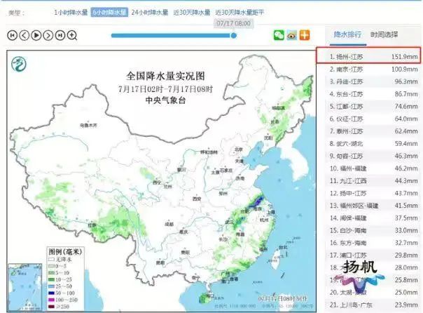 7月17日5時48分,揚州市氣象臺升級發(fā)布暴雨橙色預(yù)警,7月17日6時起提升揚州城市防洪應(yīng)急響應(yīng)等級至Ⅲ級。