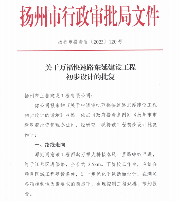 7月18日,萬??焖俾窎|延建設工程初步設計獲得市行政審批局批復,標志該項目正式進入開工建設啟動階段。