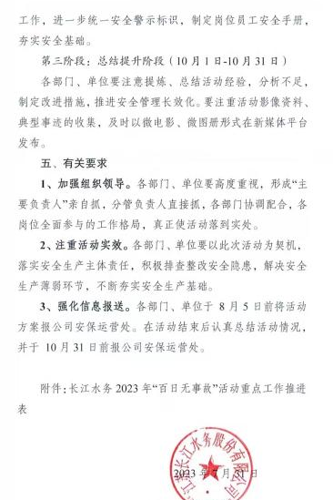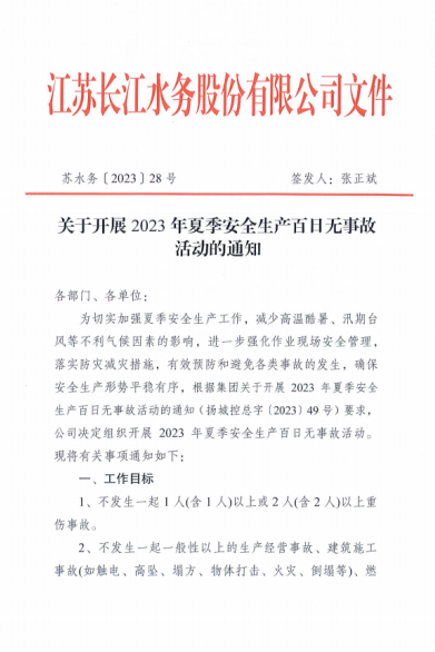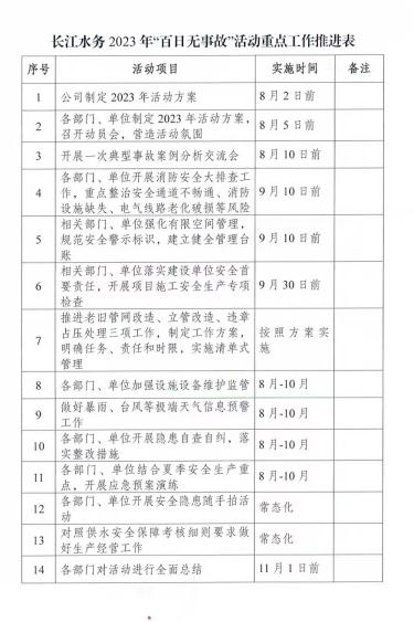 安全發(fā)展大如天,安全責(zé)任重如山。為進(jìn)一步織密織牢“安全防線”,根據(jù)城控集團(tuán)統(tǒng)一部署,長(zhǎng)江水務(wù)公司從嚴(yán)從實(shí)抓好夏季安全生產(chǎn)工作,制定下發(fā)“夏季安全生產(chǎn)百日無(wú)事故活動(dòng)”方案,多措并舉筑牢安全供水防線,扎實(shí)推進(jìn)活動(dòng)走深走實(shí)。