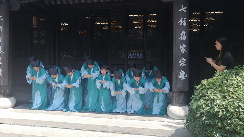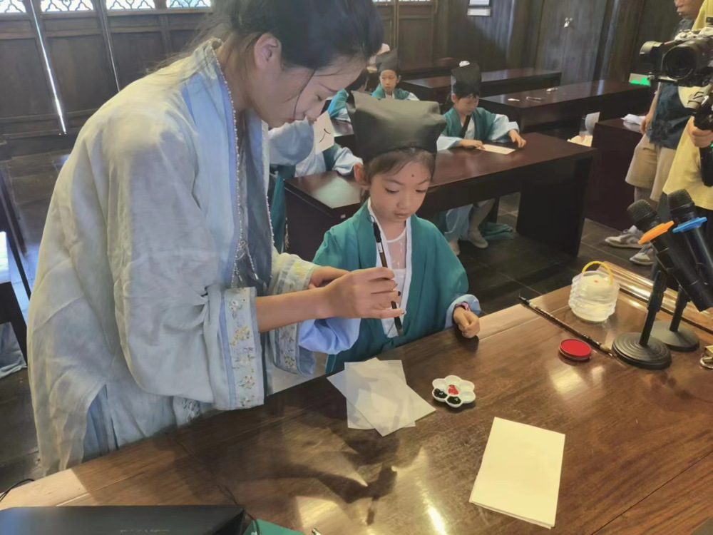 蒙學(xué)禮儀環(huán)節(jié)再現(xiàn)了阮元對于教育的重視。學(xué)員們端坐坐案前,聆聽著古時教學(xué)的內(nèi)容,感受了傳統(tǒng)蒙學(xué)的學(xué)習(xí)方式。通過此次親身體驗,大家更加深刻明白了阮元崇尚儒學(xué)、注重教育的人生態(tài)度。