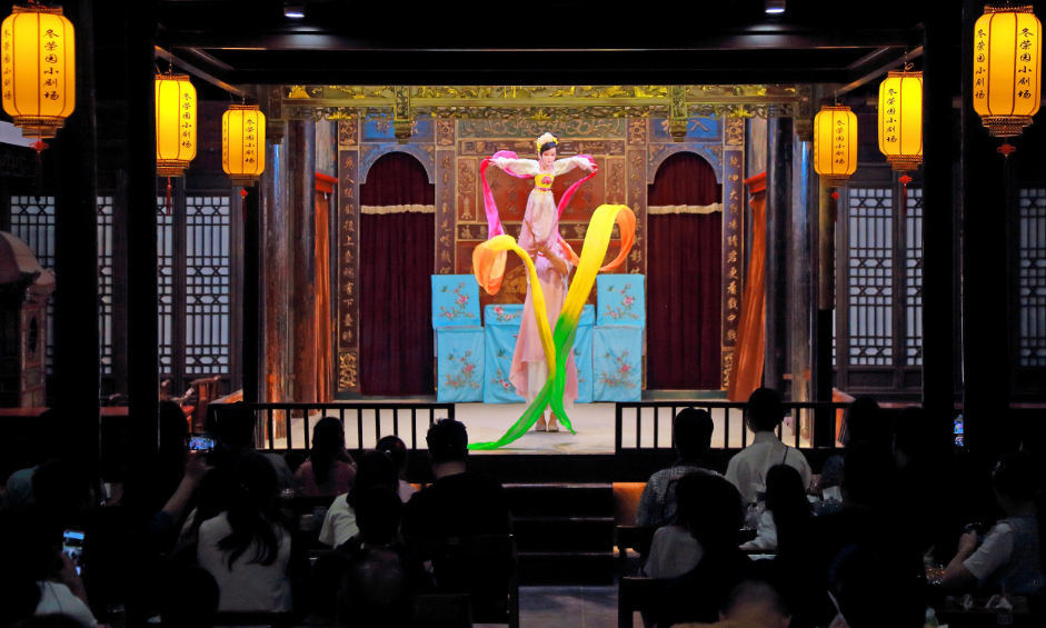 長樂客棧芍藥園子小劇場(chǎng)位于東關(guān)街357號(hào)長樂客棧的棲鳳堂內(nèi),現(xiàn)有80多個(gè)觀眾座席位,每場(chǎng)演出不少于1小時(shí),劇場(chǎng)提供特色早茶,揚(yáng)州茶點(diǎn)等,在觀看傳統(tǒng)文化的同時(shí),也可以體驗(yàn)揚(yáng)州早茶和下午茶文化。