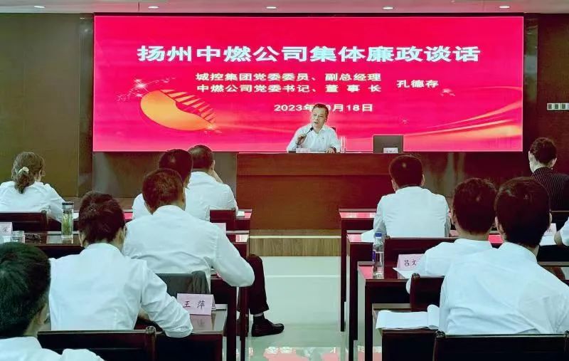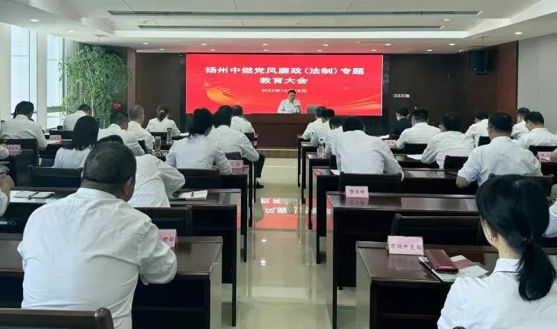 2023年10月18日下午,揚州中燃公司召開黨風廉政暨法制教育專題會議。公司領導班子全體成員、中層干部、各支部委員、重點崗位人員參加會議。