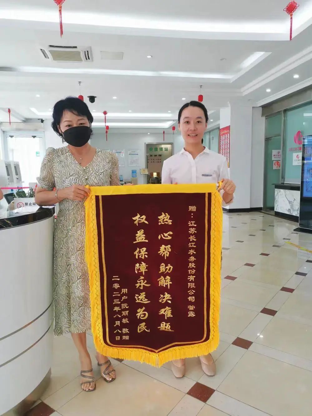 前不久,市民阮女士專程來到長江水務營業(yè)大廳,送來一面印有“熱心幫助解決難題 權益保障永遠為民”的錦旗,感謝“水務微管家”管露服務熱情、辦事高效,為其解決難題。