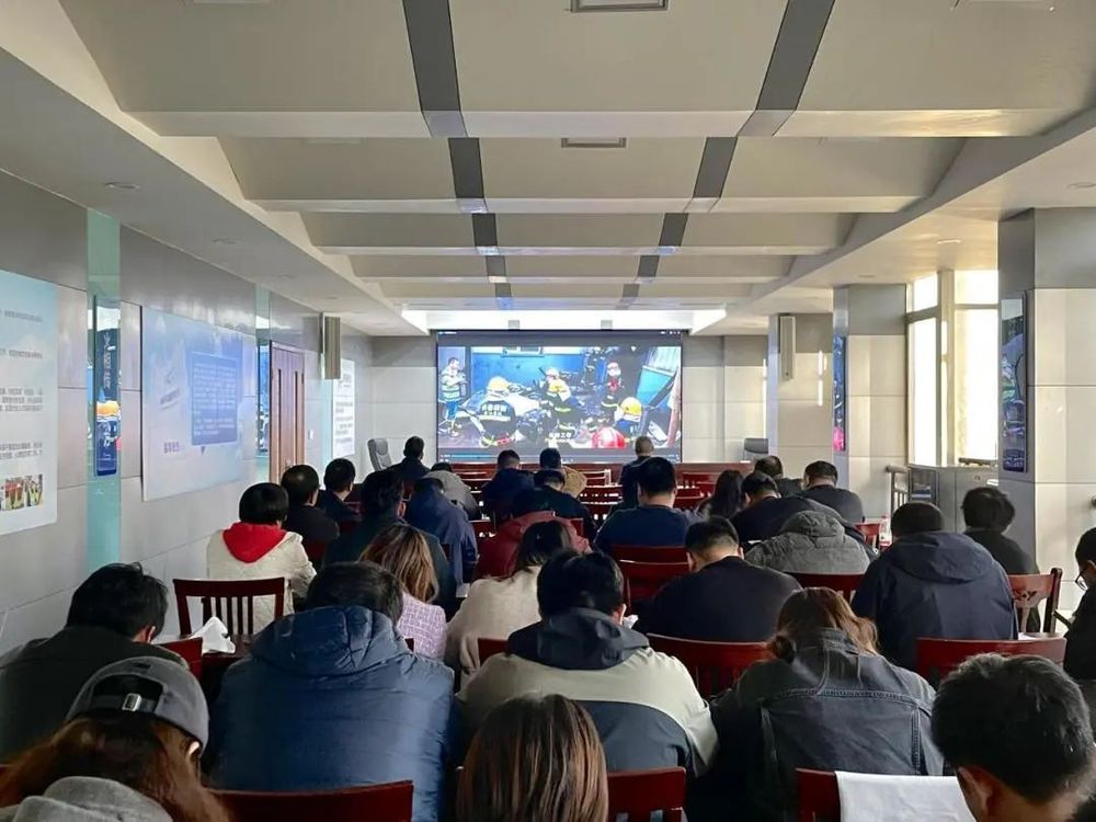 與會人員集中觀看消防教育警示視頻