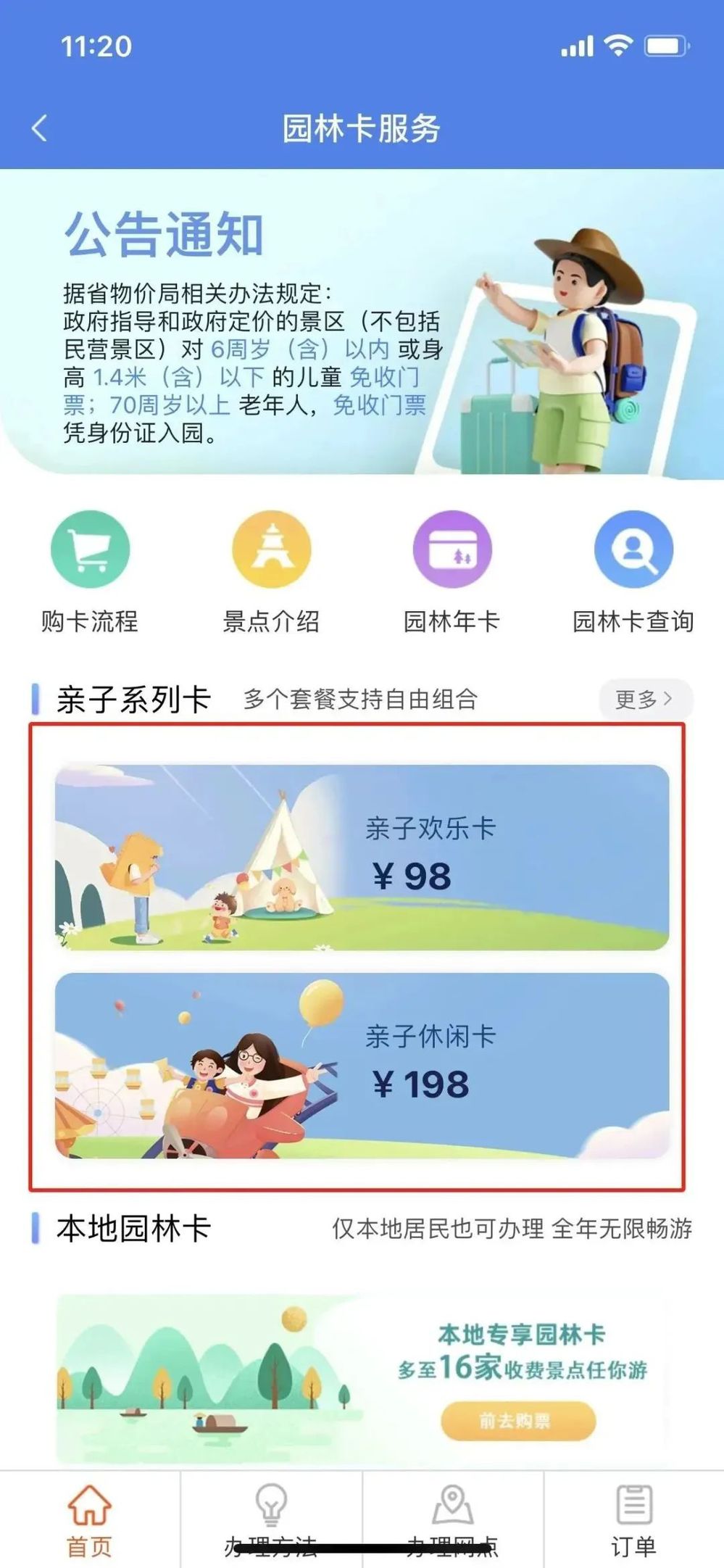 點擊“園林”,進入“園林卡服務”選擇“園林年卡”。
