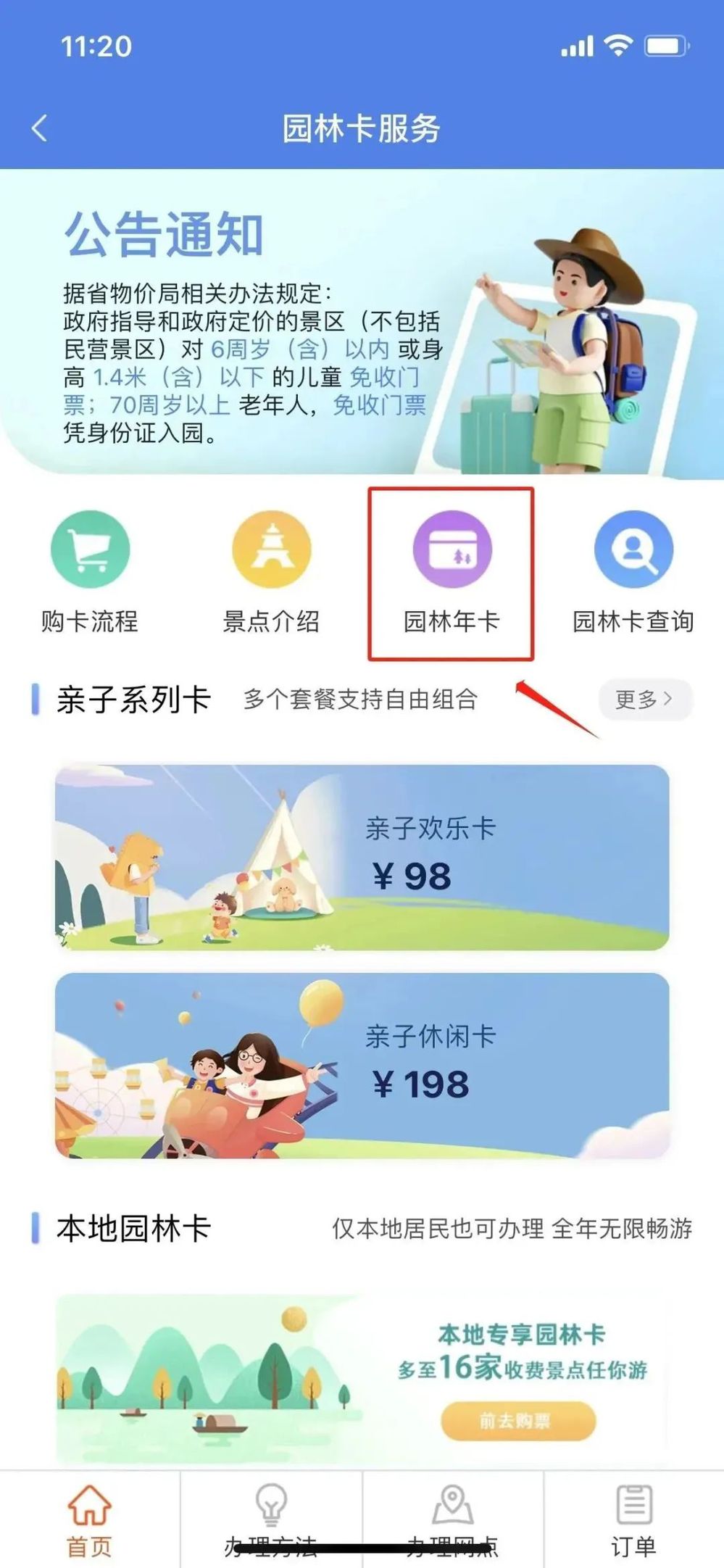 進入“園林年卡”服務