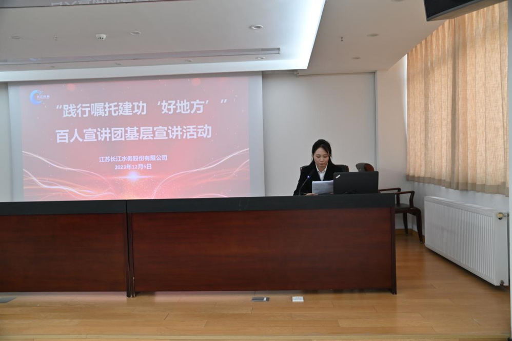為深入學(xué)習(xí)貫徹習(xí)近平新時代中國特色社會主義思想,切實(shí)推動主題教育深入基層、走深走實(shí),12月6日,長江水務(wù)開展“踐行囑托建功‘好地方’”百人宣講團(tuán)基層宣講活動,公司領(lǐng)導(dǎo)班子、全體中層干部和部分職工代表參加了活動。