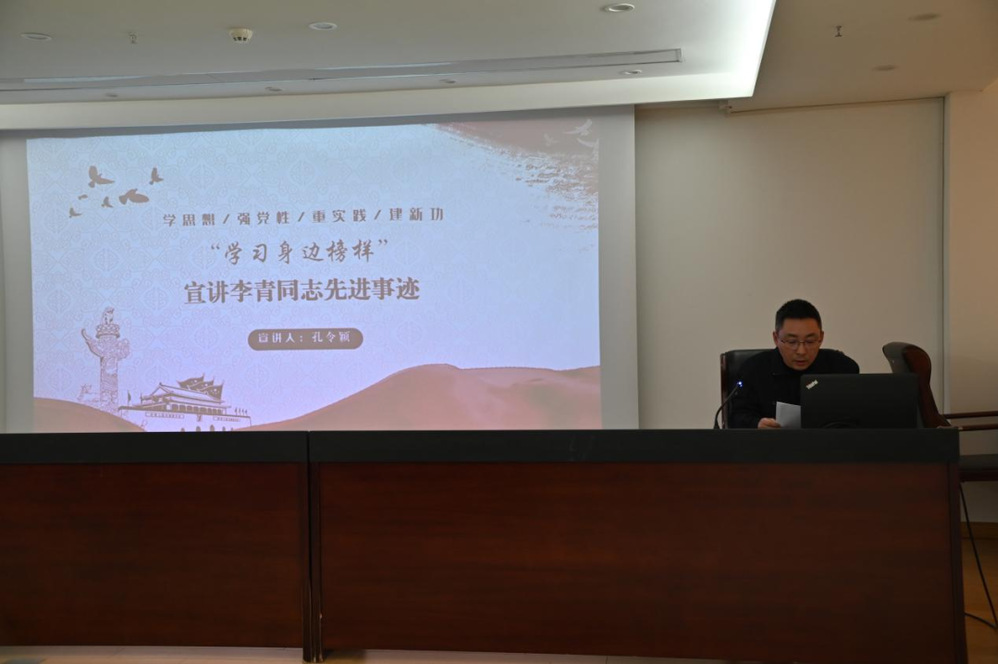 隨后,由長江水務(wù)第五黨支部副書記孔令穎同志宣講“學(xué)習(xí)身邊榜樣”——李青同志先進(jìn)事跡,用樸實(shí)的語言、生動的例子、真實(shí)的情感講述了李青30年如一日為民服務(wù)的初心故事。