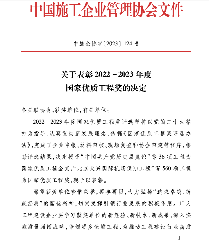 國(guó)家優(yōu)質(zhì)工程獎(jiǎng)設(shè)立于1981年,倡導(dǎo)“追求卓越、鑄就經(jīng)典”的精神理念,評(píng)定注重工程質(zhì)量的全面、系統(tǒng)管理,是經(jīng)國(guó)務(wù)院確認(rèn)的我國(guó)工程建設(shè)領(lǐng)域設(shè)立最早,規(guī)格最高,跨行業(yè)、跨專業(yè)的國(guó)家級(jí)質(zhì)量獎(jiǎng)。