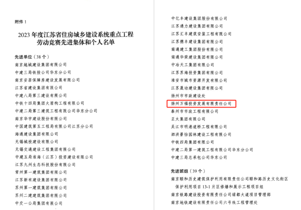 近日,萬福公司被授予 “2023年度省住建系統(tǒng)重點(diǎn)工程勞動競賽先進(jìn)單位”榮譽(yù)稱號。