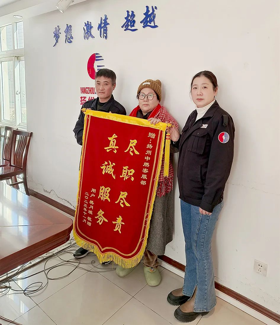 日前,市區(qū)天然氣用戶樊女士將一面印有“盡職盡責 真誠服務”的錦旗送到了揚州中燃公司,對客服部工作人員快速響應用戶需求、提供優(yōu)質(zhì)服務表示感謝。