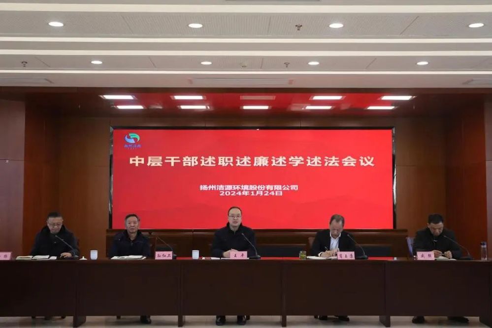 為進一步加強公司干部隊伍管理,全面總結(jié)2023年工作成績,推動2024年各項工作再上新臺階,1月24日下午,潔源環(huán)境公司組織召開2023年度中層干部述職述廉述學述法會議,公司領(lǐng)導班子成員、全體中層干部及部分職工代表參加會議。
