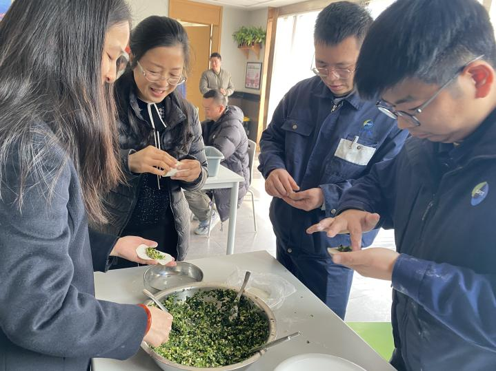 活動現(xiàn)場,公司全體職工積極參與,現(xiàn)場氣氛十分熱烈,大家紛紛擼起袖子拿出自己的“看家本領(lǐng)”,和面、拌餡、搟面皮、包餃子......大家彼此配合默契,包餃子的同時,大家猜猜燈謎、訴家常,整個餐廳充滿了歡聲笑語,處處洋溢著溫馨的氛圍。