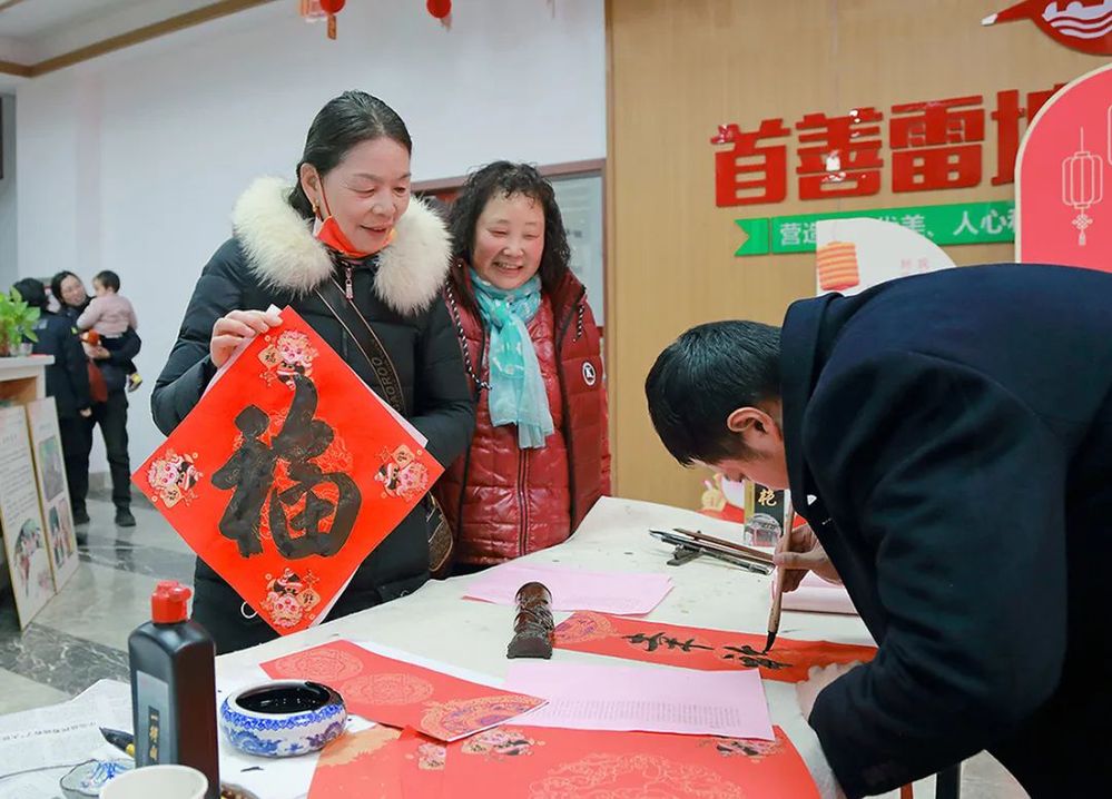 俗話說:無聯(lián)不成春,有聯(lián)春更濃。春聯(lián)送的是祝福,暖的是人心,讓群眾們切實感受到中國傳統(tǒng)文化獨特魅力和節(jié)日溫情,共享文化志愿服務的惠民新成果。兩場活動累計為群眾送出了200多張“福”字、100多副春聯(lián)作品。