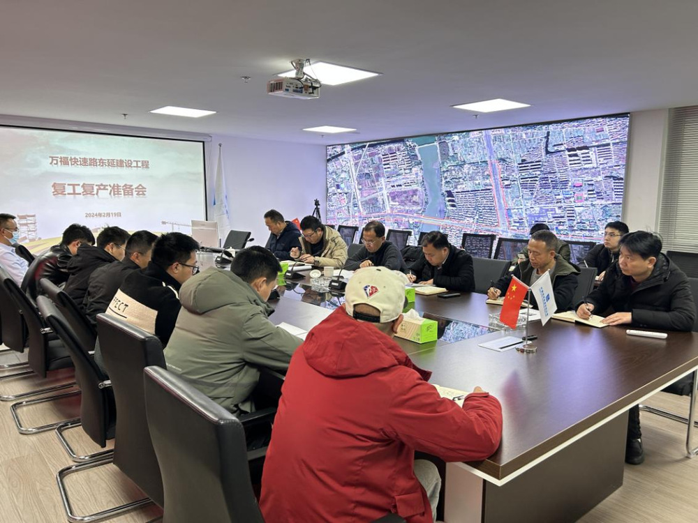 2月19日上午,上善公司集中建設(shè)項(xiàng)目指揮部組織召開(kāi)了復(fù)工復(fù)產(chǎn)會(huì)議,動(dòng)員快速路全體建設(shè)者迅速調(diào)整心態(tài)、收心歸位,并對(duì)節(jié)后工作進(jìn)行了全面部署,按下節(jié)后復(fù)產(chǎn)復(fù)工“啟動(dòng)鍵”。