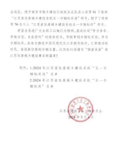 在國際勞動婦女節(jié)到來之際,長江水務公司客服中心高興榮獲省住建系統(tǒng)“五一巾幗標兵”、寶帶營業(yè)廳收費班榮獲“揚州經(jīng)濟技術開發(fā)區(qū)巾幗文明崗”榮譽稱號。