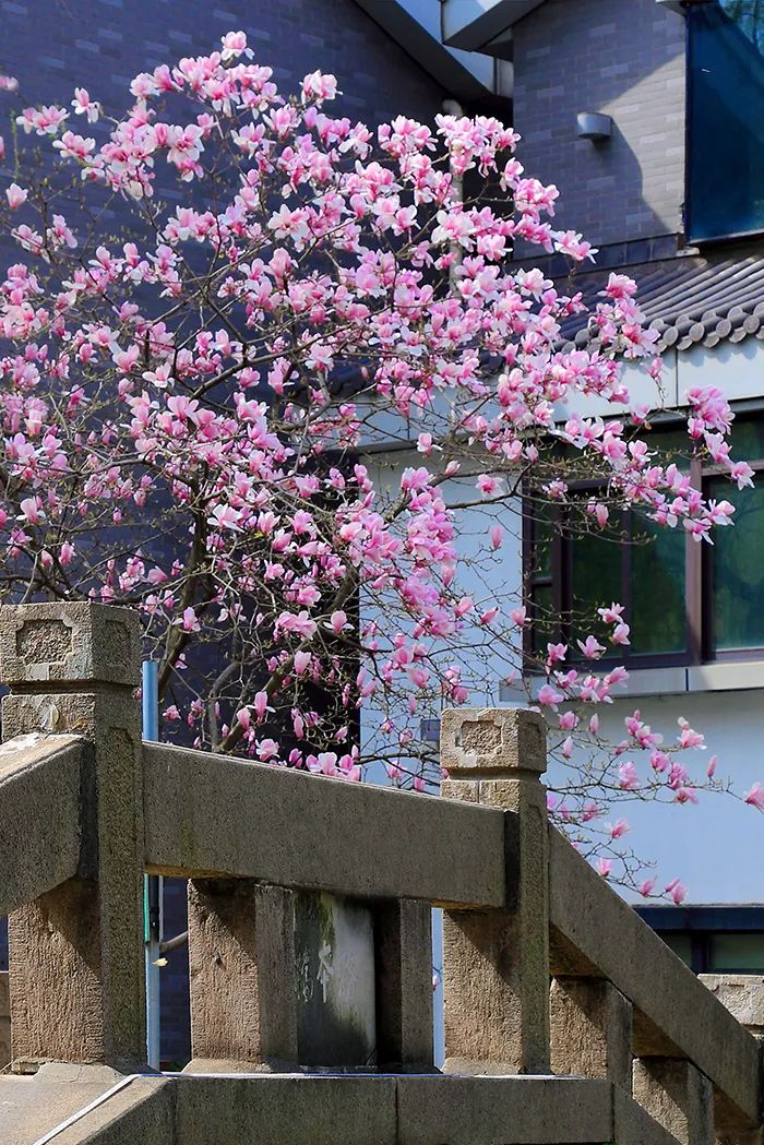 春風(fēng)輕拂,小秦淮河兩岸一株株玉蘭花樹傲然挺立,似白鴿飛舞、如彩蝶翩翩,讓人感受到了溫暖和陪伴。白色的花朵玉潔冰清、輕盈純凈,紫色的花朵燦若云霞、風(fēng)姿綽約,它們相約悄然綻放,以最溫婉的方式宣告春暖花開,以最熱情的方式喜迎賓朋。